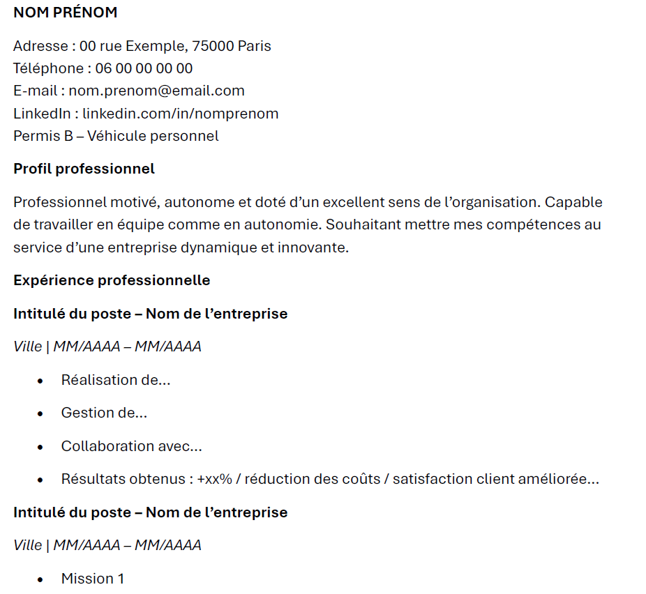 Le PDF utilisé est un faux CV très simple, servant uniquement de document de test.