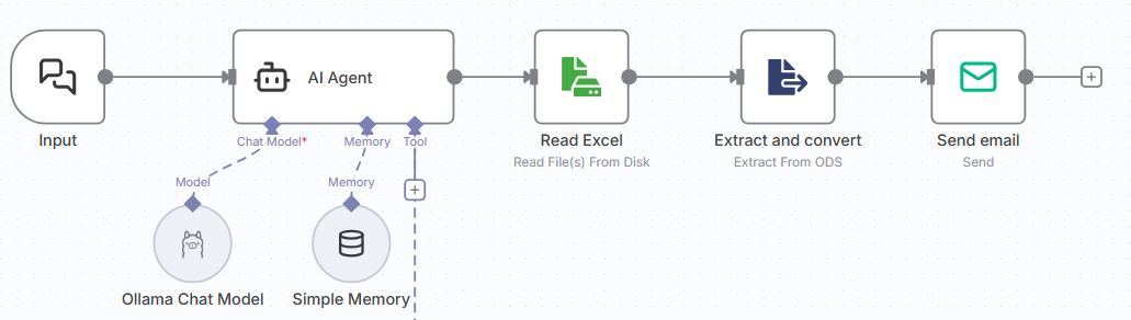 Dans mon cas, j’ai créé un agent IA connecté à Ollama (plus d’infos), capable de lire des fichiers locaux et d’envoyer des mails automatiques selon les consignes que je lui ai données.
