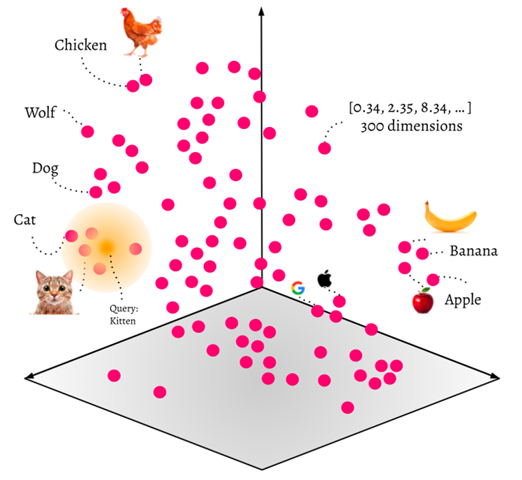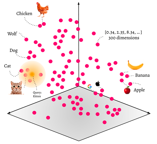 Ces vecteurs capturent la sémantique ou les caractéristiques de l’objet. Plus deux vecteurs sont proches dans l’espace vectoriel, plus les objets associés sont similaires.